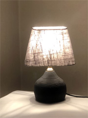 Soms kopen wij ook iets tweedehands en dan gebeurt dit, een tafellichtje, op de kop getikt voor slechts 2 €, het vaasje in het zwart gezet, een nieuw kapje er op, een nieuw socket, nieuwe schakelaar, draad en stekker eraan.